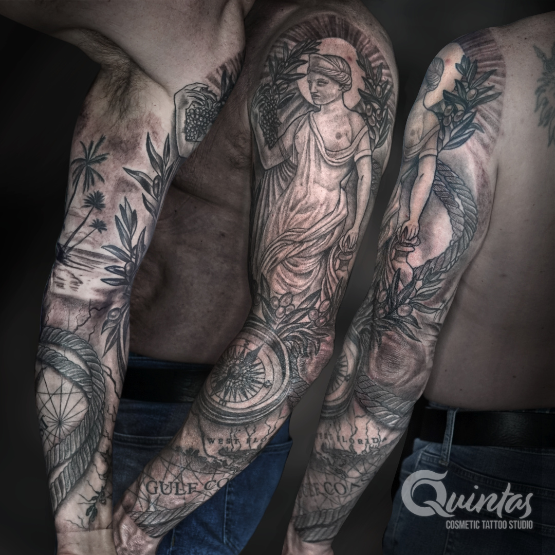 Strongly designed artwork, bold clean lines, solid color fill, well tuned equipment… these are the elements we use to insure the tattoos we do last forever and keep their looks throughout a lifetime. Have a tattoo you were never quite happy with? Looking to get a new one? Come see me.